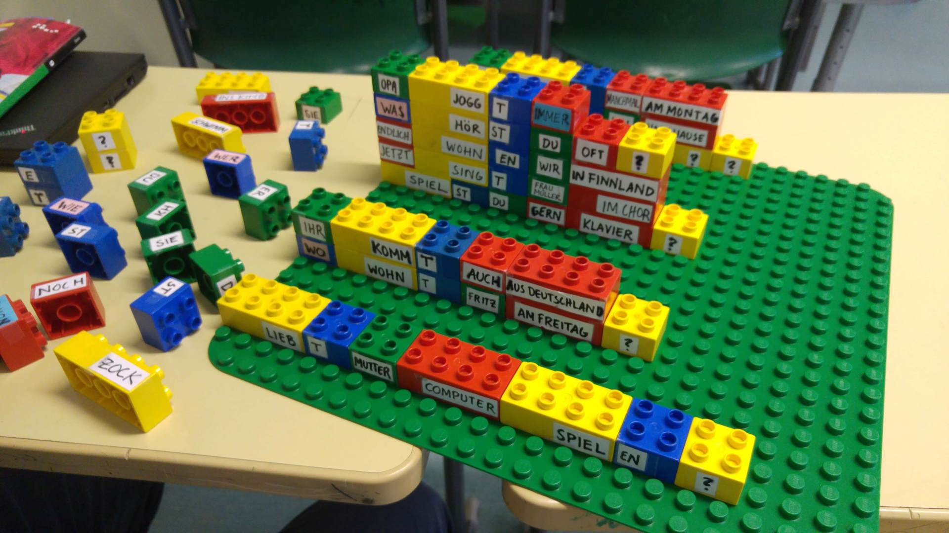 The pictures below provide examples of Syyrilä’s digital-tactile approach to language teaching in 2016. They highlight different ways for students to learn word order in German through tactile exercises, digital exercises using Sanako’s digital language teaching solution, and emphasise how both combine to enforce the pedagogical plan. Communicating and working in pairs and groups are also essential in her classroom