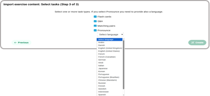 It is also available when using Sanako AI to generate multiple MFL exercise types concurrently by simply selecting a tick box.