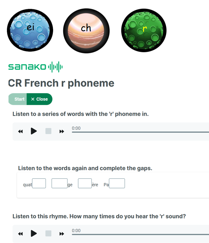 As well as whole class teacher presentation and practice, children can practise these using activities created in Sanako Connect. Children can practise them either at school or at home on any device (phone, tablet, computer) as they are all web-based and totally GDPR compliant, children just need a URL or QR code to join the lesson, and don’t need to login in with a username and password. In this way they will be able to improve their pronunciation independently.