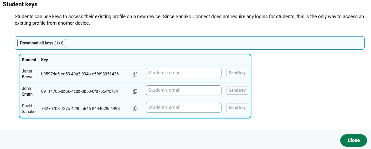 Connect now offers the option of emailing the keys right inside Connect, for both teacher and student users whilst maintaining its robust GDPR credentials.