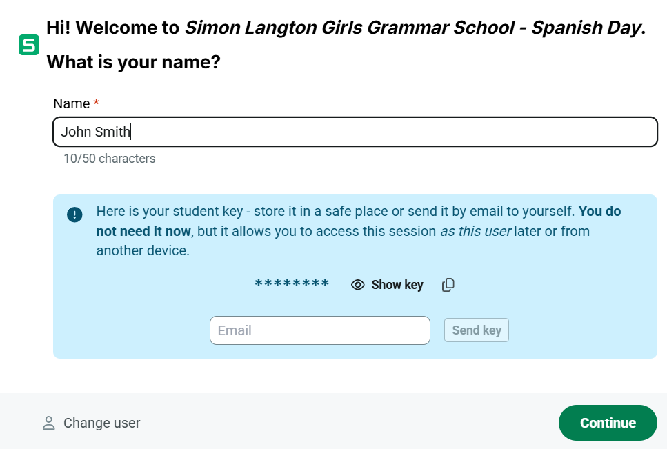 When your students enter one of your new sessions, they will see a prompt which allows them to email their student key to themselves straight away to save time.