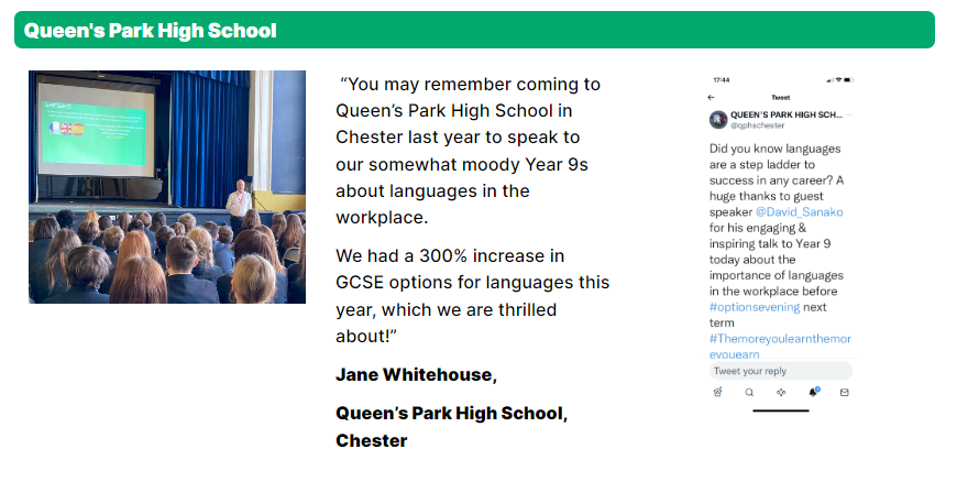 Sanako UK - MFL Career Talks Continue to Have a Positive Impact on Student Numbers