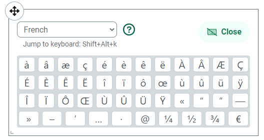 - Floating special characters keyboard for text based and written exercises. This clever device is simple yet very effective in written work and submissions.