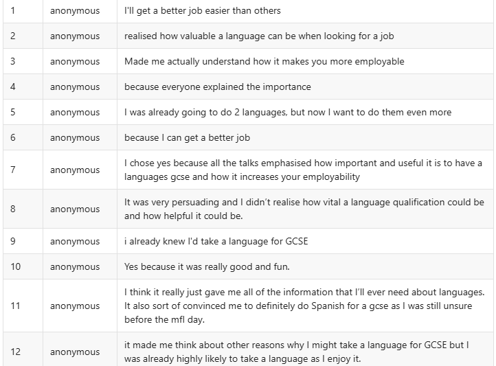 Thank you so much for today, it was fantastic!! I’ve currently got some of the younger students who you spoke to after break and had some amazing feedback. This is also a lower set who find languages tricky and are often put off.