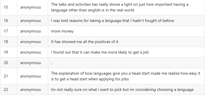 This question asked: 'do you feel more likely to choose a language after the MFL day?'