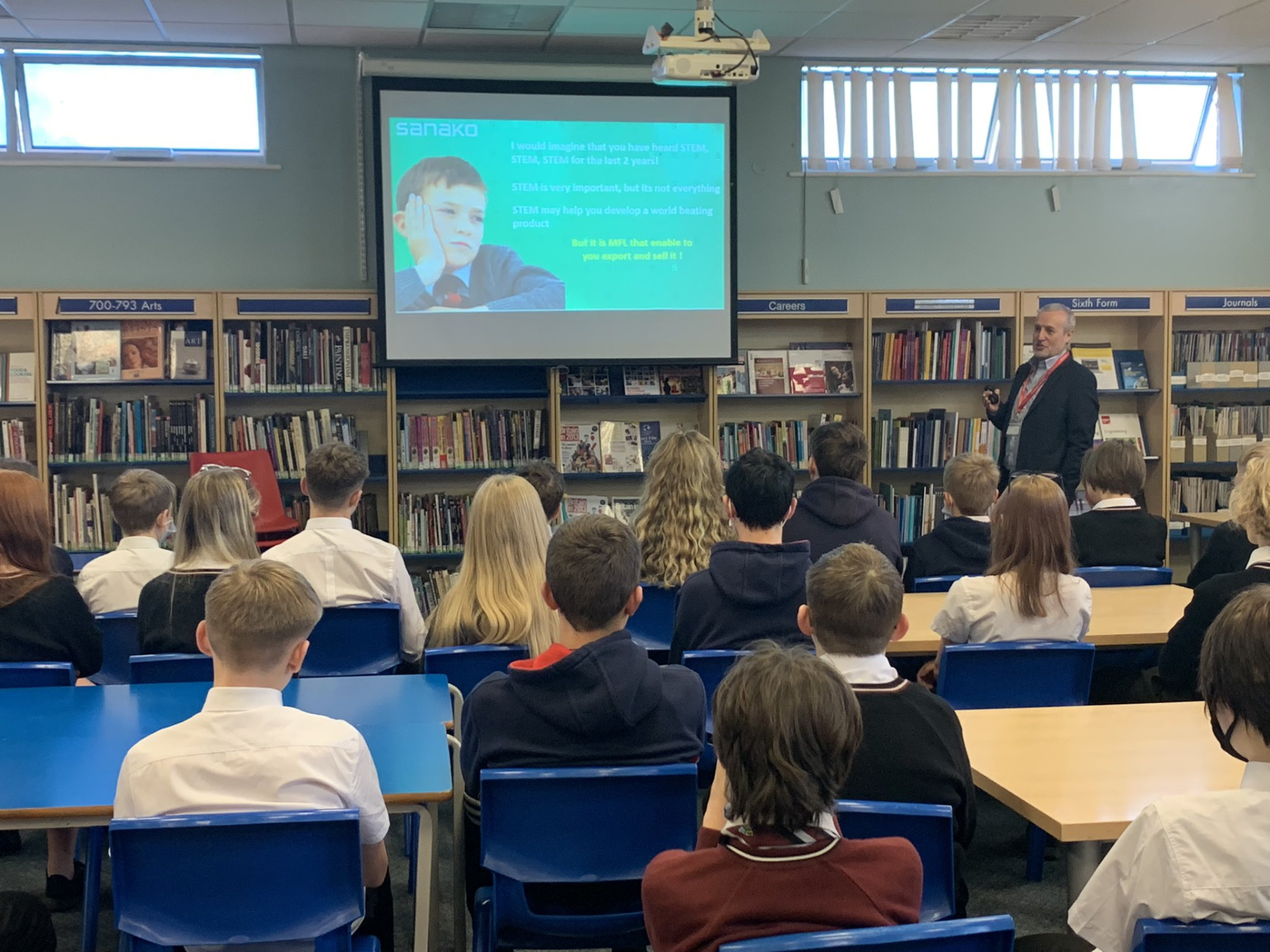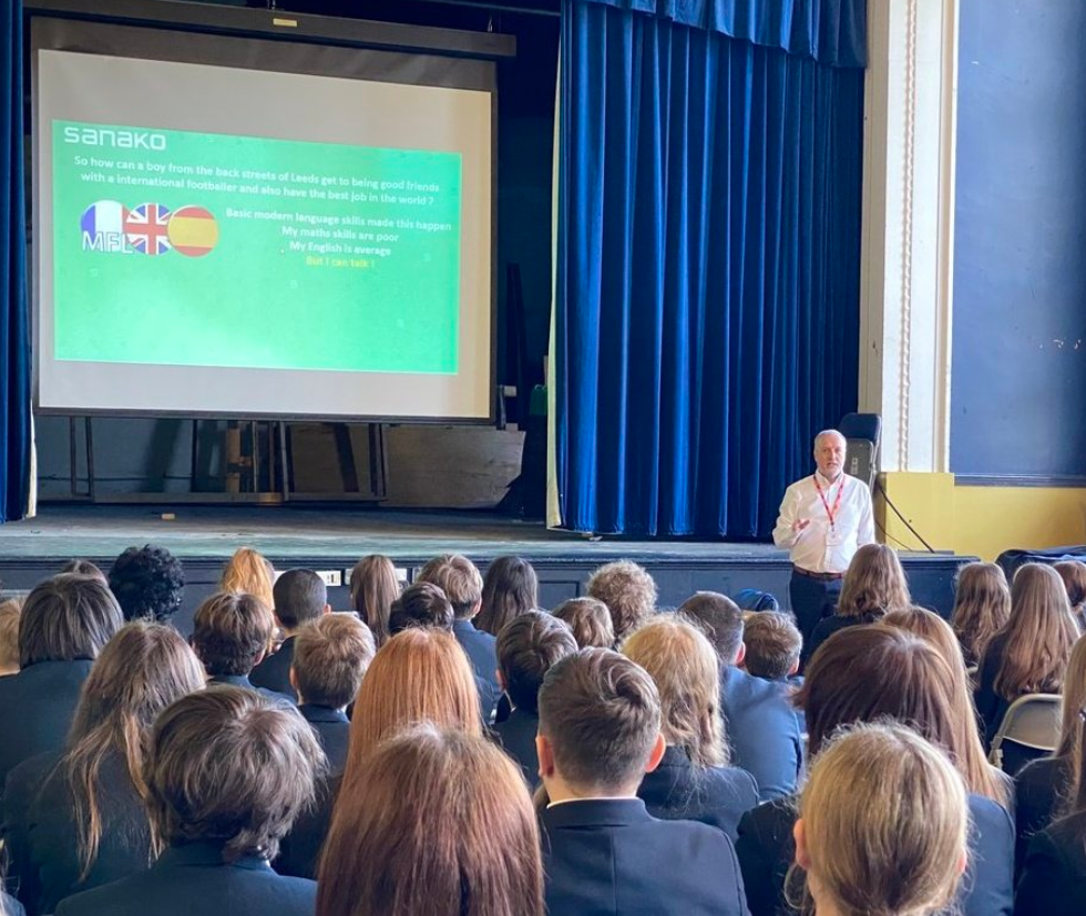 "Inspirational Talk this morning to Year 8 by David at Sanako UK about the importance of a language skill in ANY career especially in obtaining that first face to face job interview