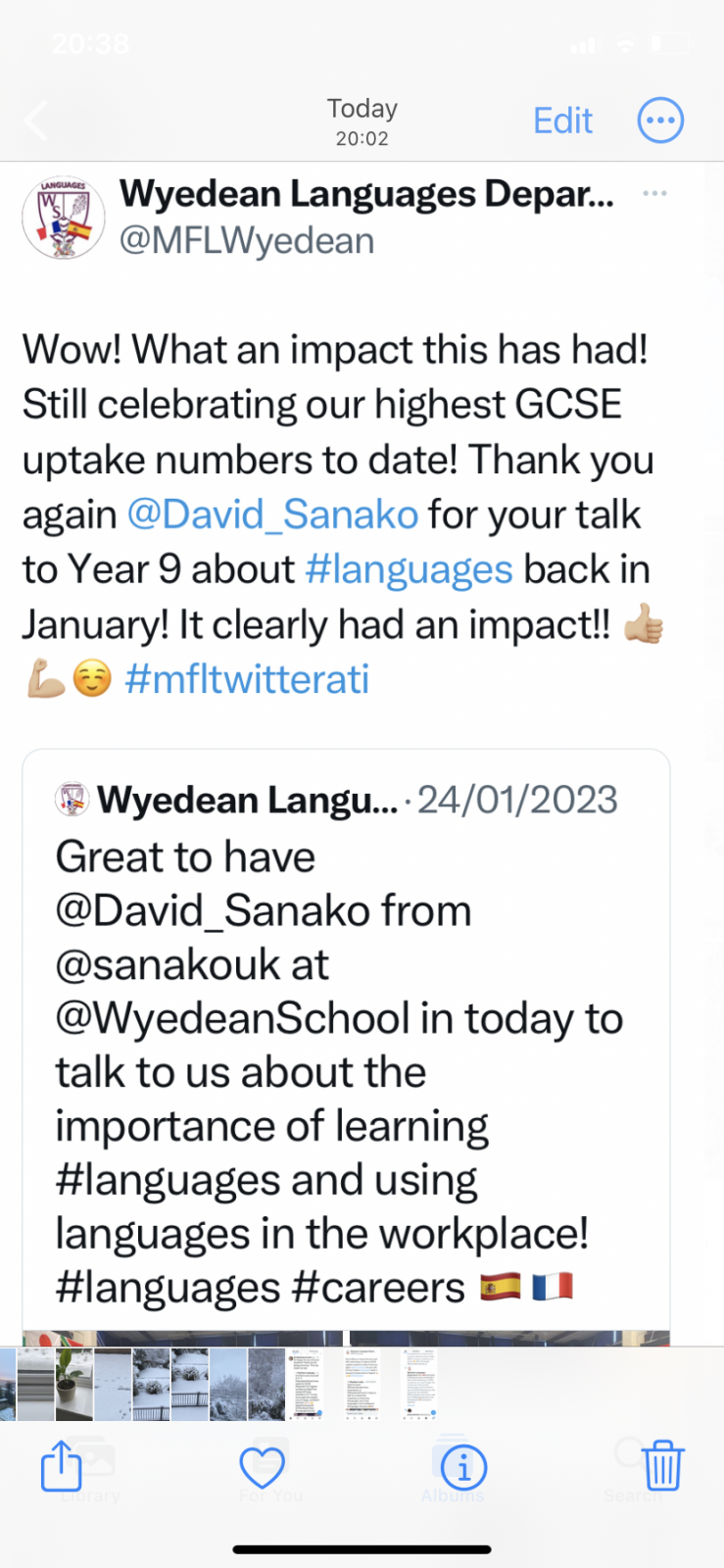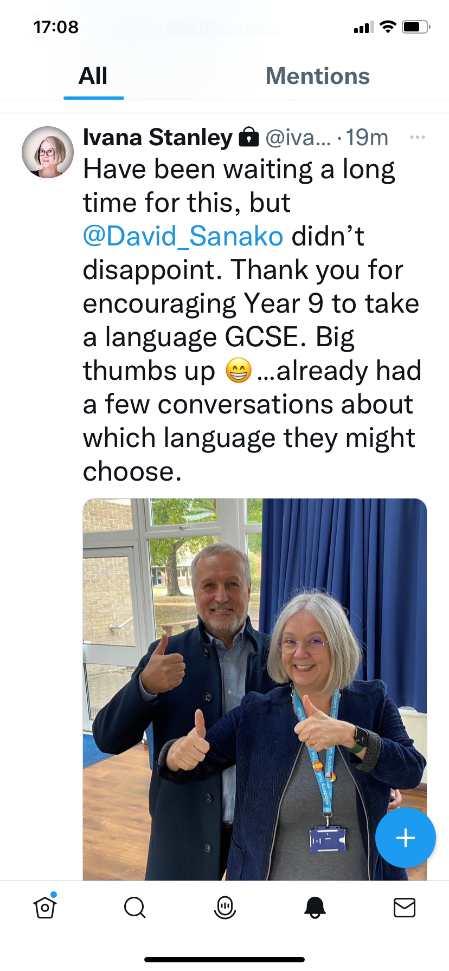 I just wanted to get in touch to let you know that we have definitely increased our number for GCSE MFL next year. We have received a lot more interest, and, compared to last year, we have had double the number of students choosing Spanish as their first option for GCSE. We are delighted!