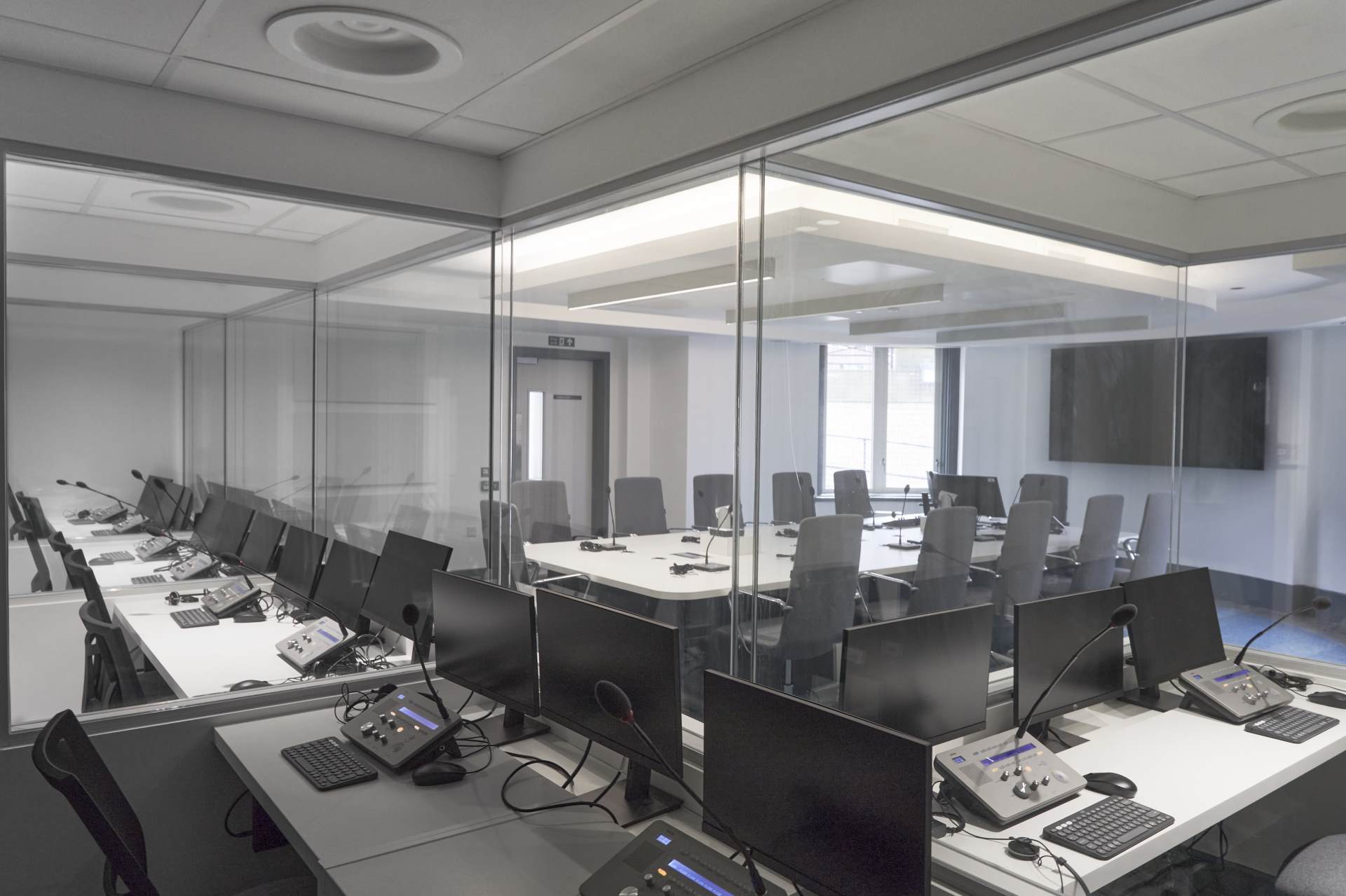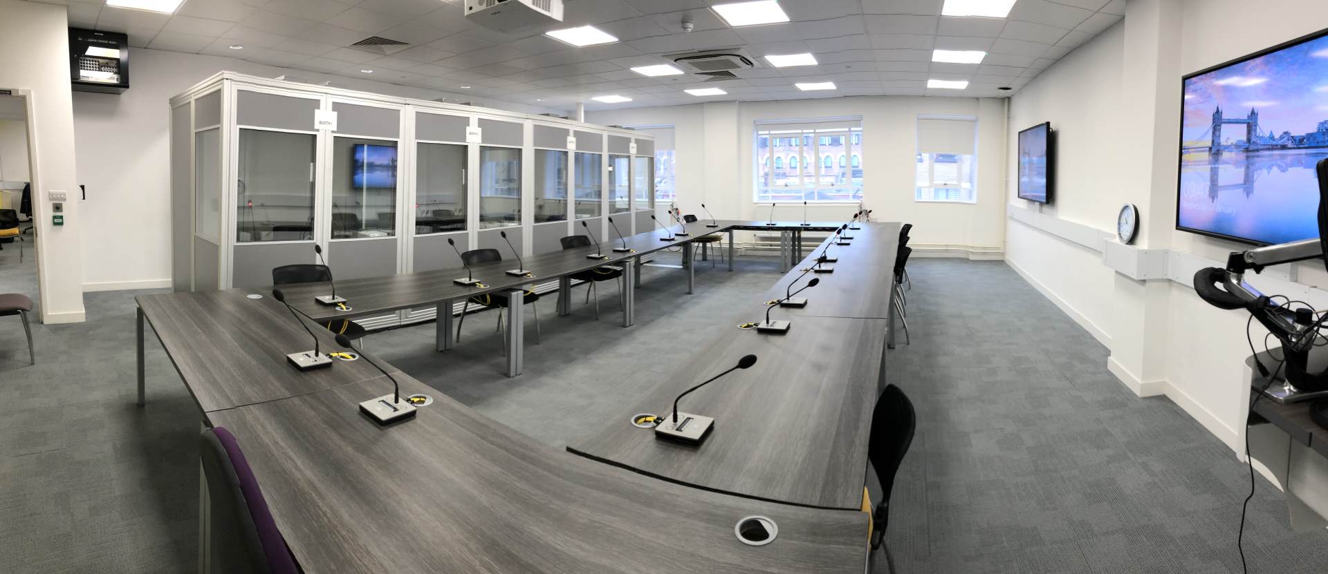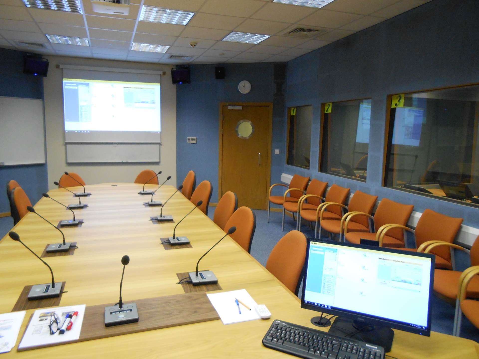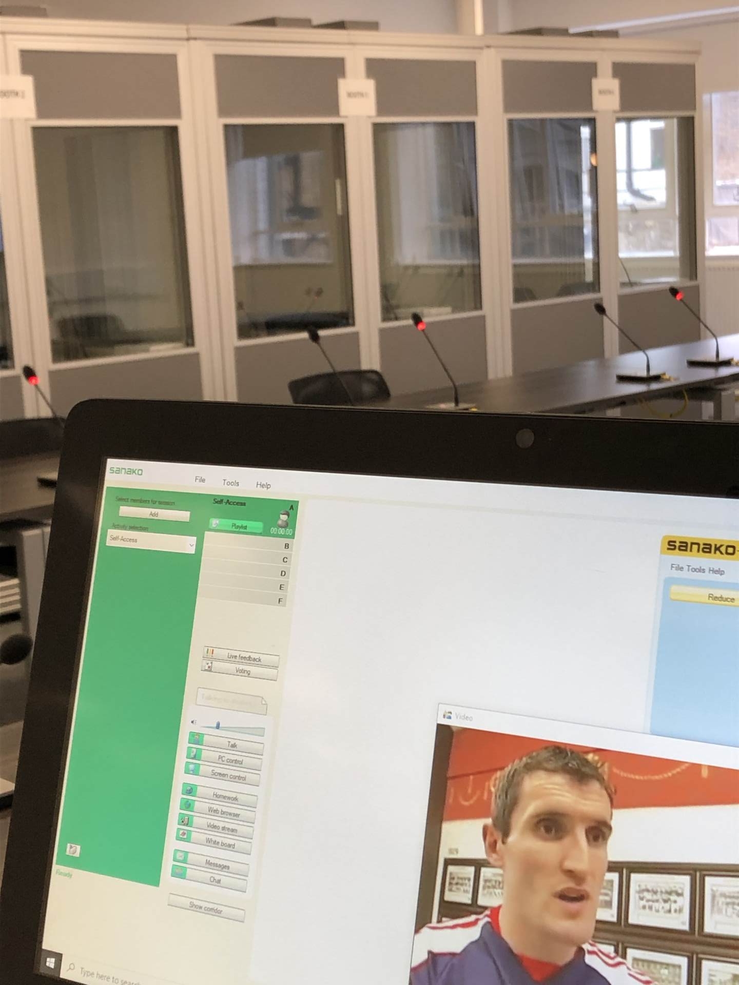 The flexibility of the unique Sanako software modules enable any variation or specification. You may require laptops or tablets to be used. Alternatively computers only to be available in the single or double interpreting booths, whilst the delegates conference table remains as clear as possible. This popular method of deployment simulates many professional conferences which take place around the world.
