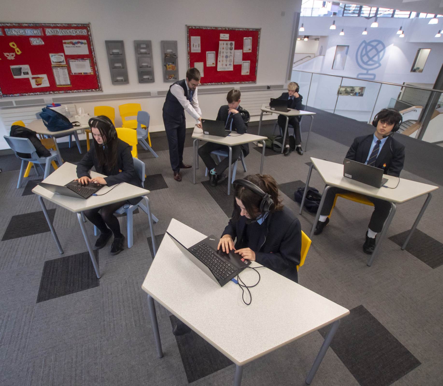 - The teacher has live monitor & intercom with students to support them as required and monitor progress.